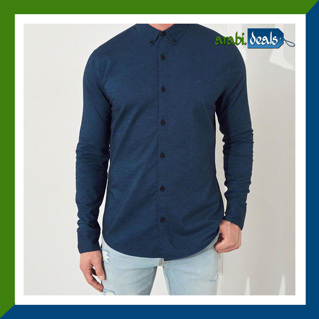A comfortable button-down shirt made with soft oxford fabric, featuring Hollister Epic Flex stretch, pocket and icon at left chest and curved hem, Slim Fit Imported